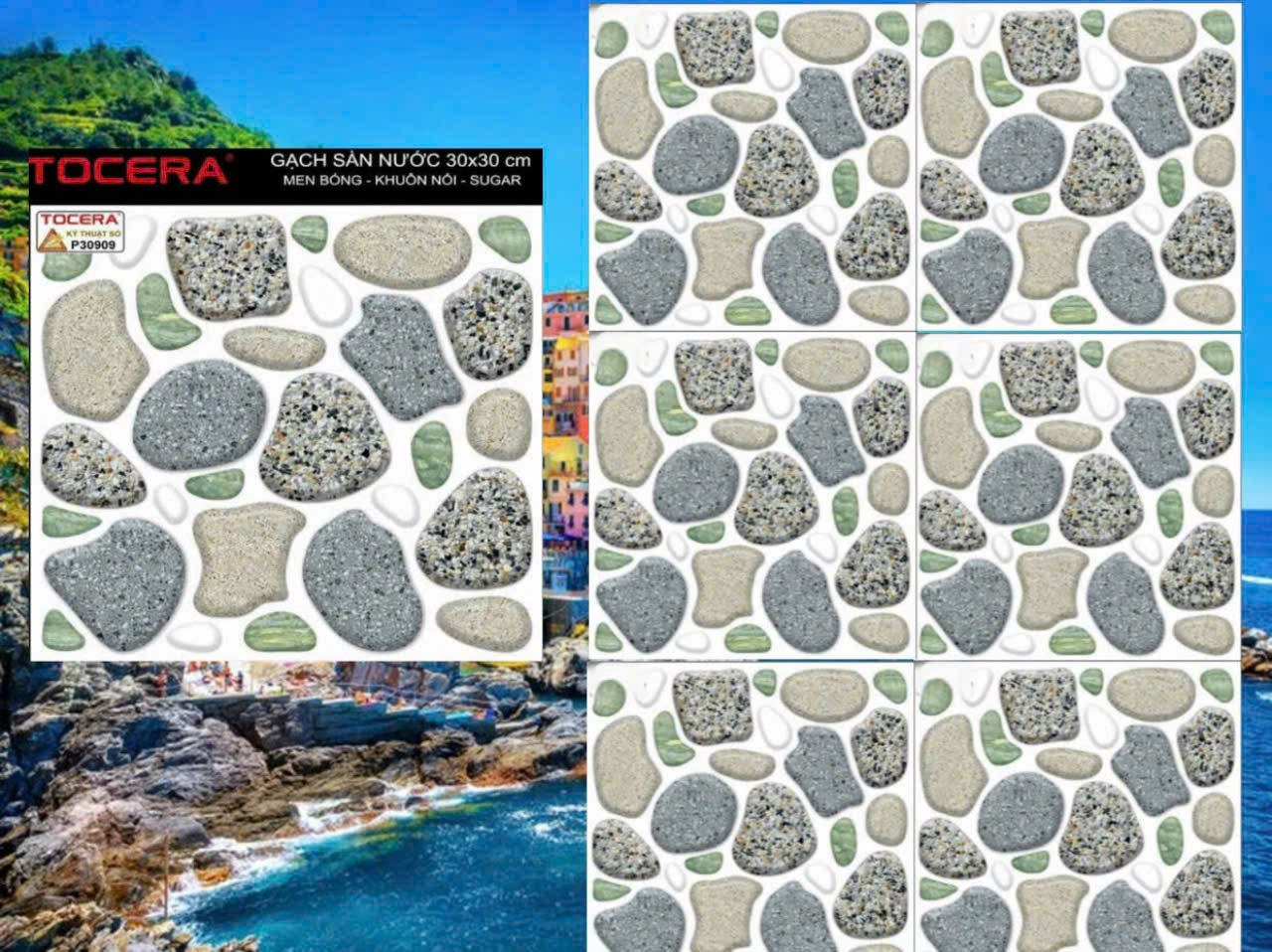 GẠCH SÀN NƯỚC KÍCH THƯỚC 30CM X 30CM DỄ THI CÔNG TRONG DIỆN TÍCH NHỎ. BỀ MẶT GẠCH SẦN NHÁM CHỐNG TRƠN TRƯỢT TRONG KHU VỰC ẨM ƯỚT CỦA NHÀ TẮM VÀ SÀN RỬA CHÉN.